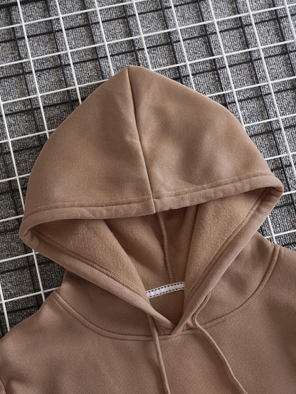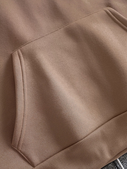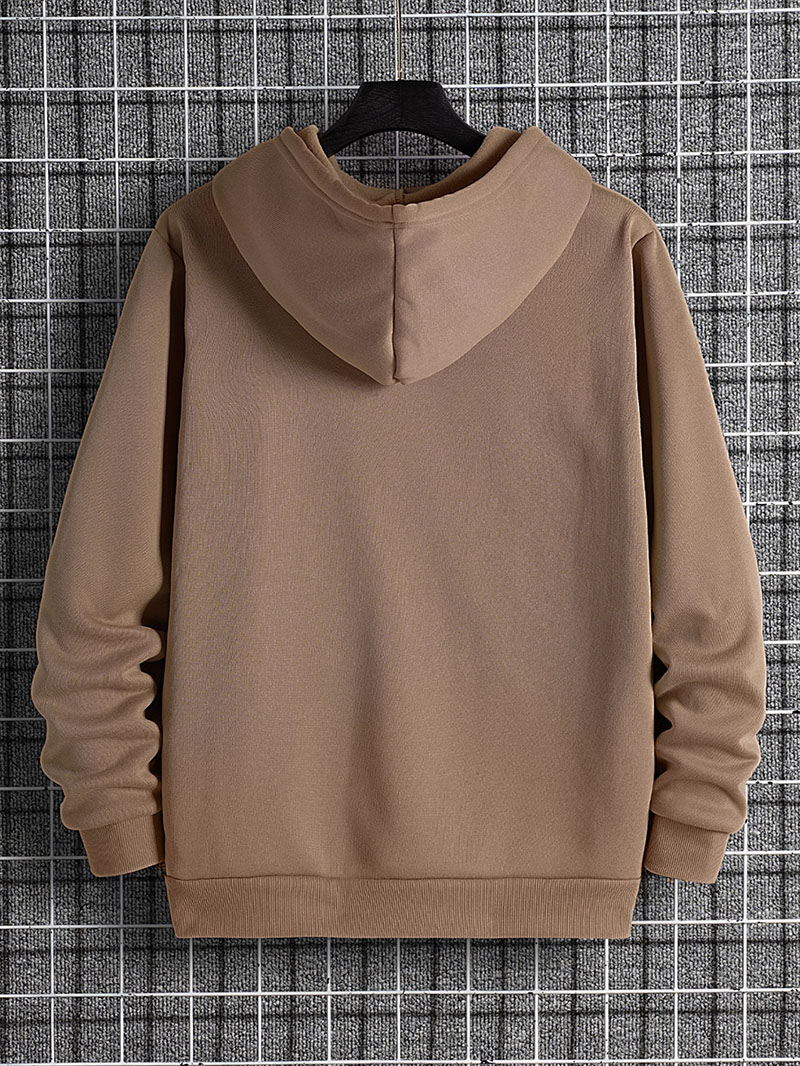 Men Solid Drawstring Pocket Detail Thermal Lined Sweatshirt