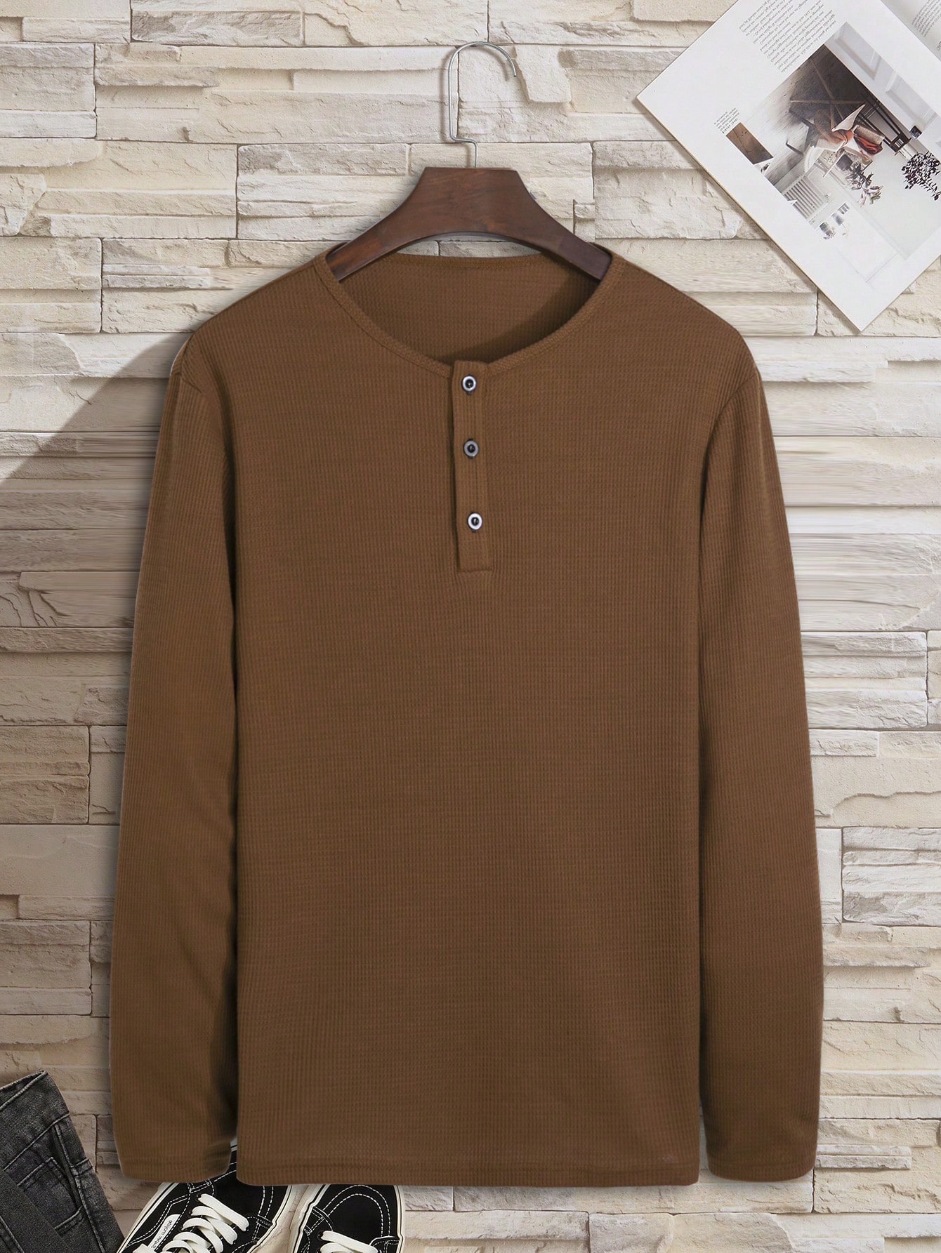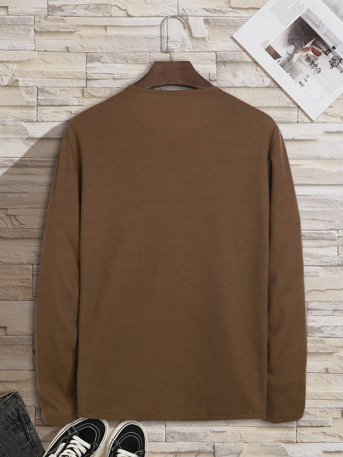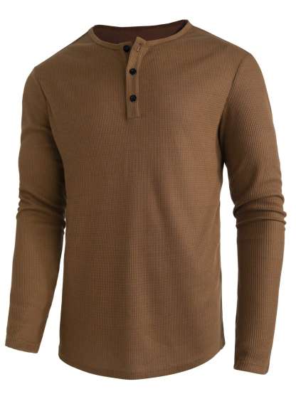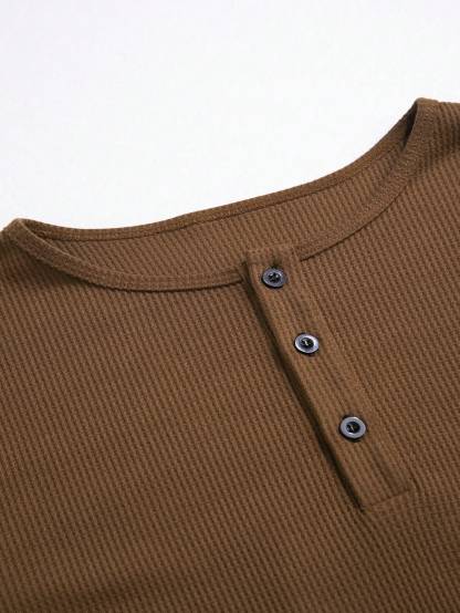 Men Half Button Waffle Knit Tee