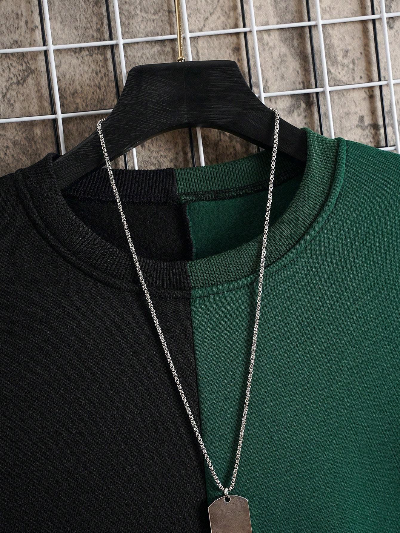 Men Plus Two Tone Thermal Lined Sweatshirt