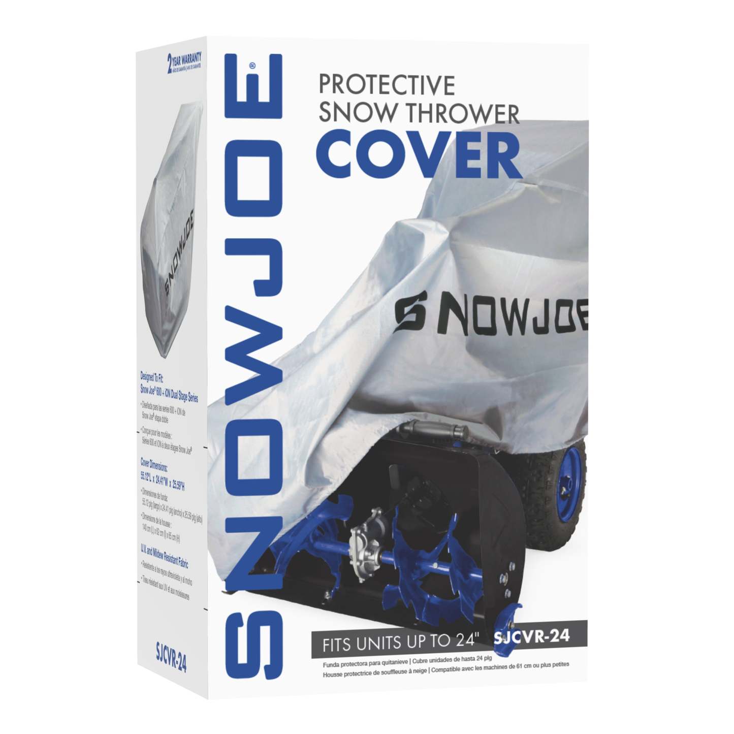 The SJCVR-24 cover from Snow Jothte offers all-season protection for electric single stage snow blowers 24-IN in width. The cover is made of heavy duty fabric that won't shrink or stretch and is water resistant. The SJCVR-24 protects your electric snow blower investment against dirt, ice, snow, rain, sun damage, tree sap and bird droppings. You can cover your unit fully assembled for quick access during the season or fold the snow blower handles for long term storage. Putting on and taking off the cover is effortless in any weather condition. The SJCVR-24 is designed to perfectly fit your Dual-Stage iON24 Snow Blower and most other models 24?inches in clearing width.?