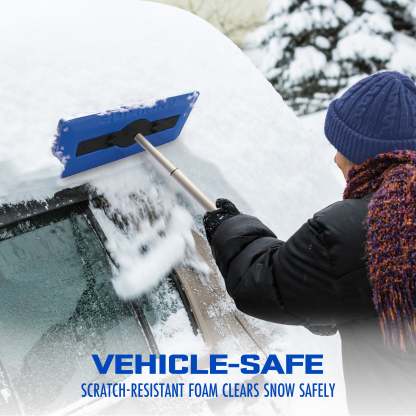 - DESIGN: The shovel has 2-blade paddle auger for efficient pickup and discharge. The snow broom is durable, reinforced non-abrasive foam head + integrated ice scraper to sweep without scratching glass