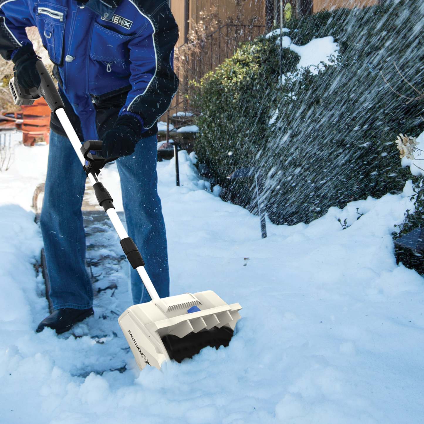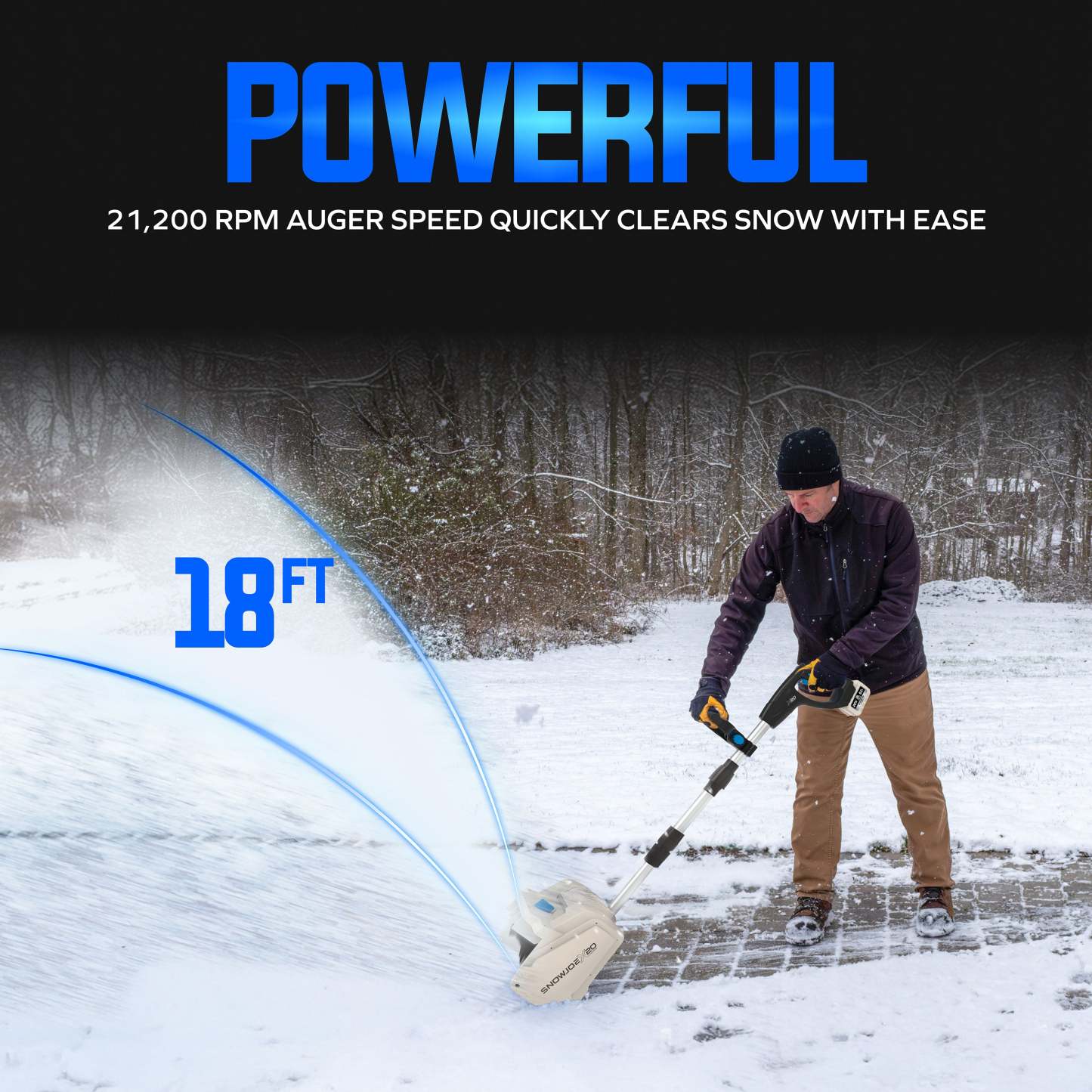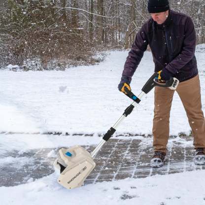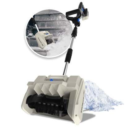 Powered by a robust 20-volt brushless motor, Snow Jothte? delivers superior performance, efficiency, and durability with less maintenance. The high-speed 2-blade paddle auger plows through snow at up to 21,200 rpm, tossing it up to 18 feet away to keep your path clear. And weighing only 8.4 lbs, this cordless shovel is easy to maneuver and won��t wear you out while you work.